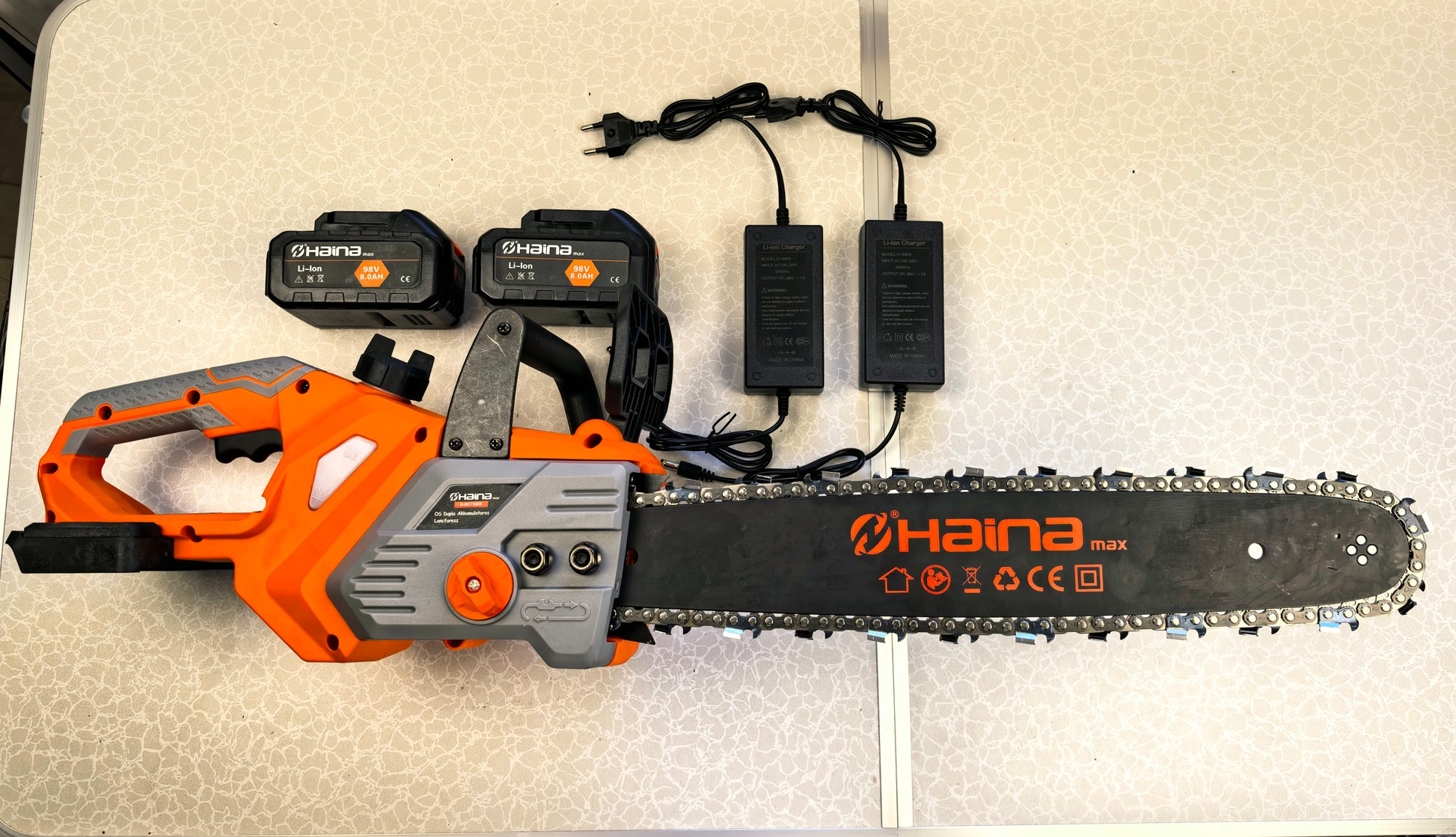 Fierastrau Haina cu lant pe acumulator, 2 baterii, 98V