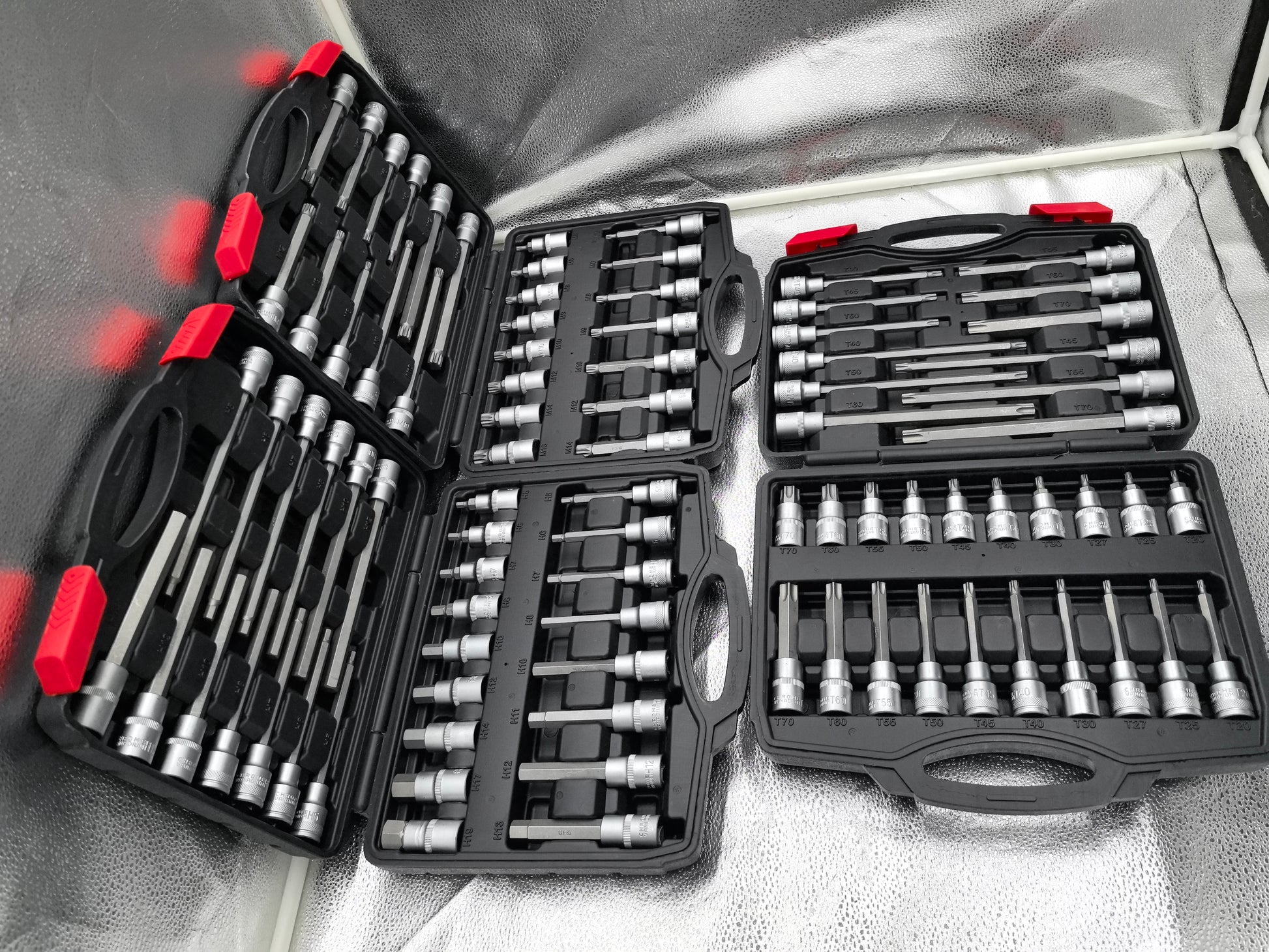 26 biti extra-lungi 1/2" DR SPLINE: Disponibile in dimensiuni variate (55mm, 75mm, 100mm, 140mm, 200mm), pentru a satisface toate cerintele de lucru.