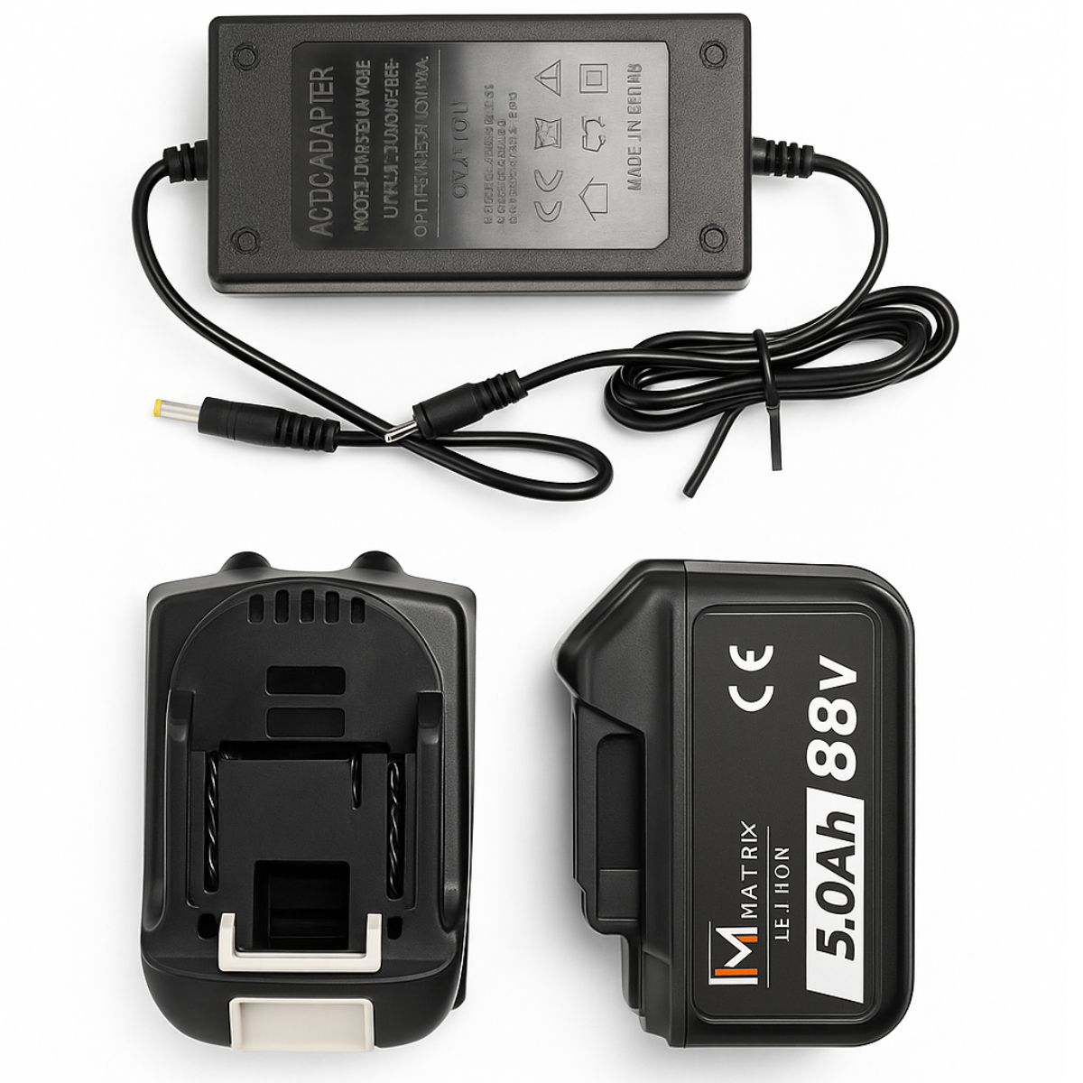 Setul de acumulatori 88V este alegerea ideala pentru lucrari continue, oferind alimentare constanta datorita celor doua baterii de mare capacitate si incarcatorului rapid inclus.