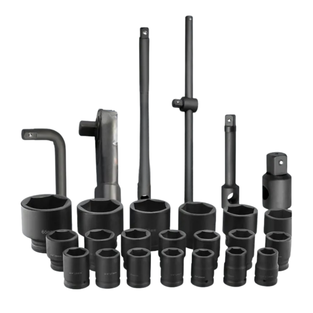 Fabricate din otel aliat de inalta rezistenta, cheile tubulare asigura durabilitate si performanta maxima chiar si in cele mai solicitante conditii. Trusa include atat capete tubulare mari, cat si accesorii esentiale (clichet, prelungitoare, adaptori), fiind compatibila cu sistemele 3/4" si 1"