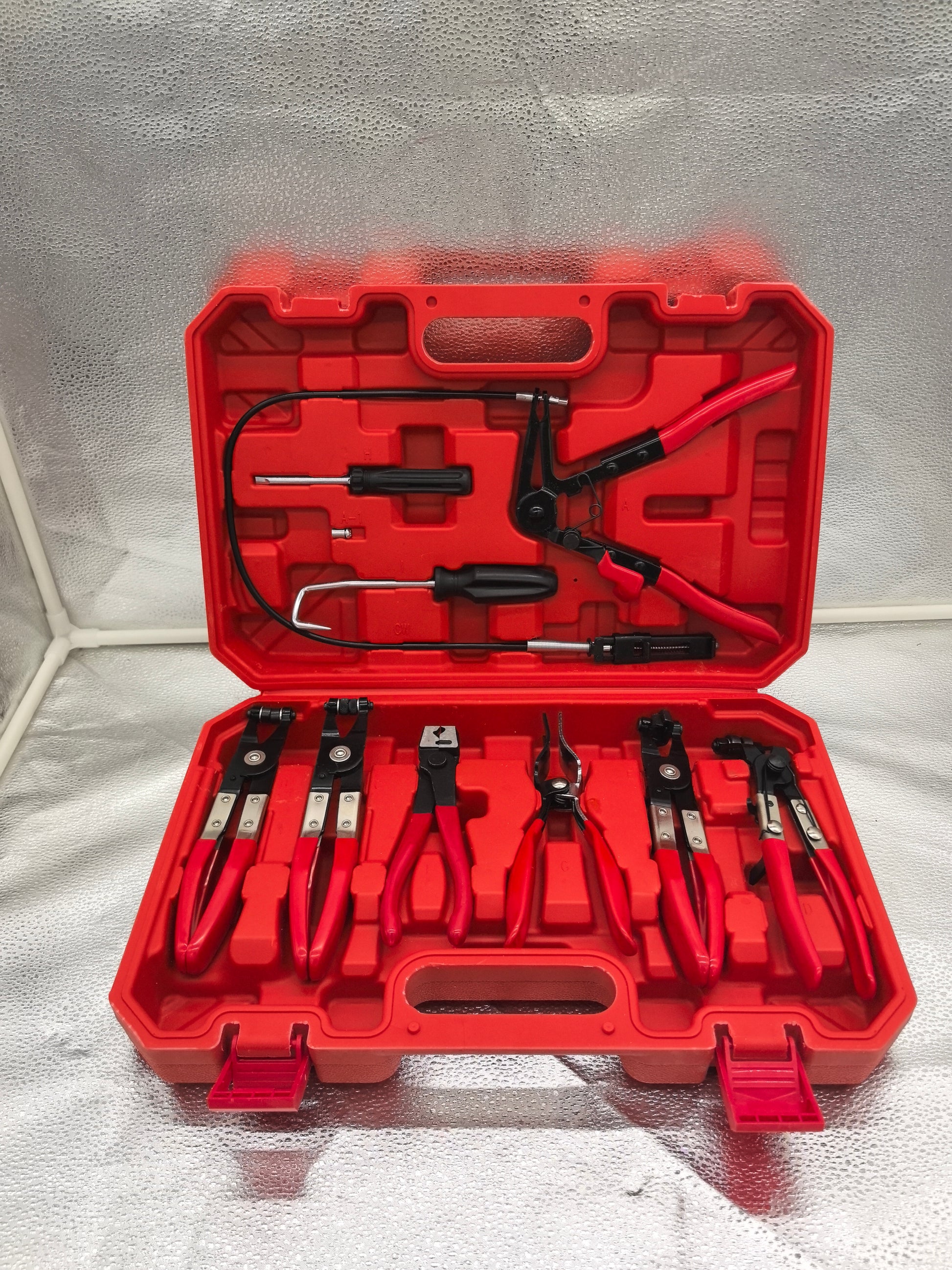 Aceasta trusa de clesti pentru coliere si conducte auto este esentiala pentru ateliere auto, mecanici si pasionati de reparatii DIY. Conceputa pentru montaj si demontaj rapid al colierelor elastice, trusa asigura eficienta si precizie in lucrul cu sistemele de racire, combustibil, frana si ventilatie.
