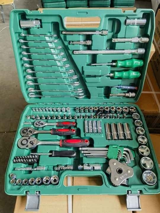 Trusa de scule profesionala 121 piese ofera toate instrumentele necesare pentru lucrari auto, de intretinere sau bricolaj acasa si in atelier. Setul include chei tubulare, biti, chei fixe si clichet in dimensiuni standard 1/4", 1/2" si 3/8", acoperind majoritatea necesitatilor practice.