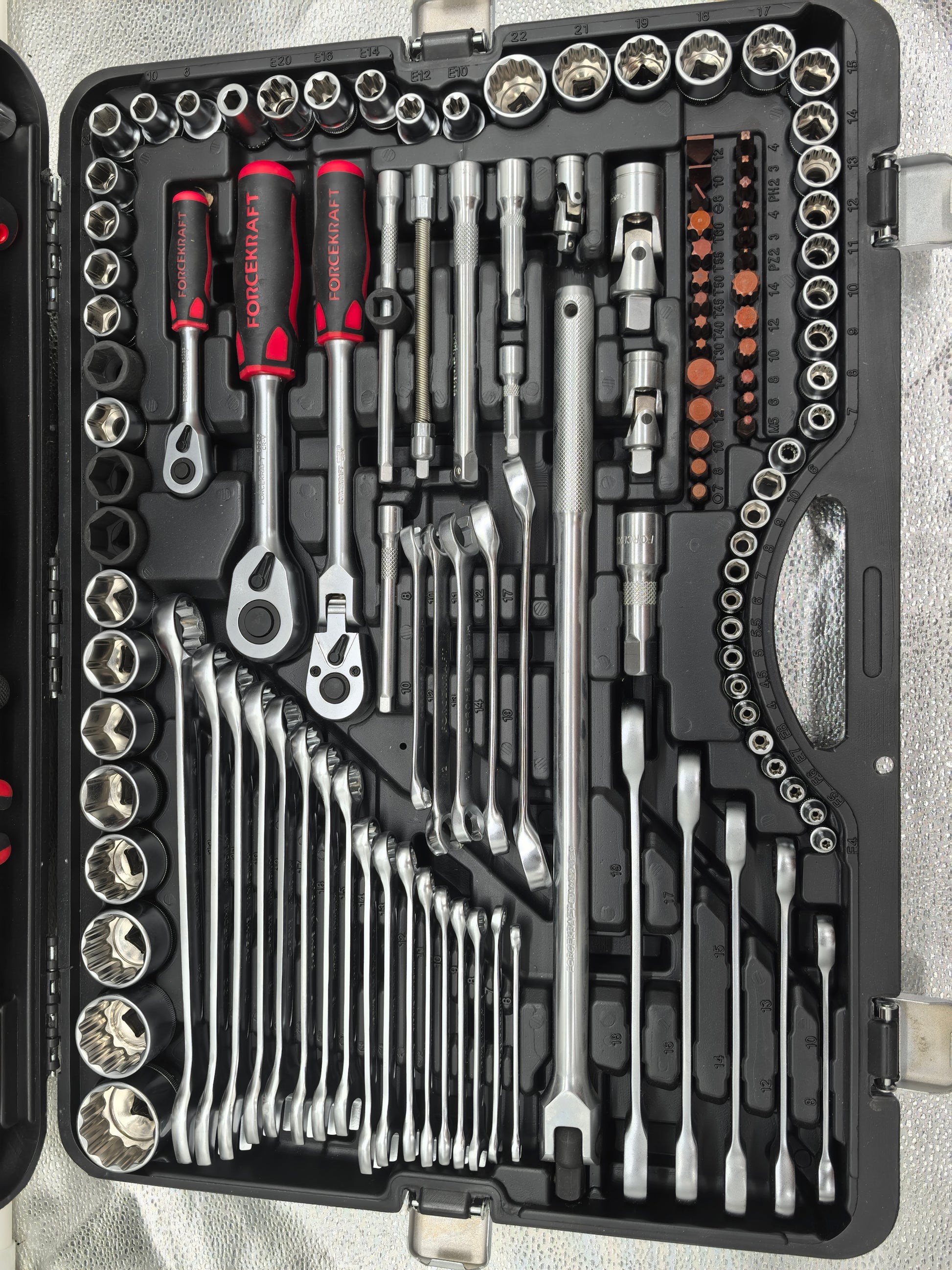 Trusa de scule Force Tools 142 piese este solutia ideala pentru lucrari auto, de intretinere si bricolaj in atelier sau acasa. Setul include chei tubulare, prize, biti, chei fixe si clichet in dimensiuni 1/2" si 1/4", oferind o acoperire completa pentru majoritatea aplicatiilor