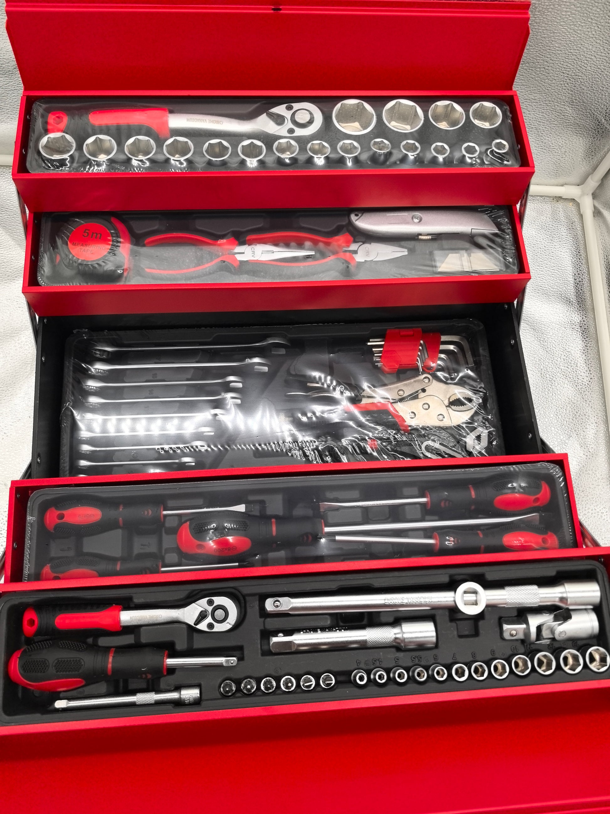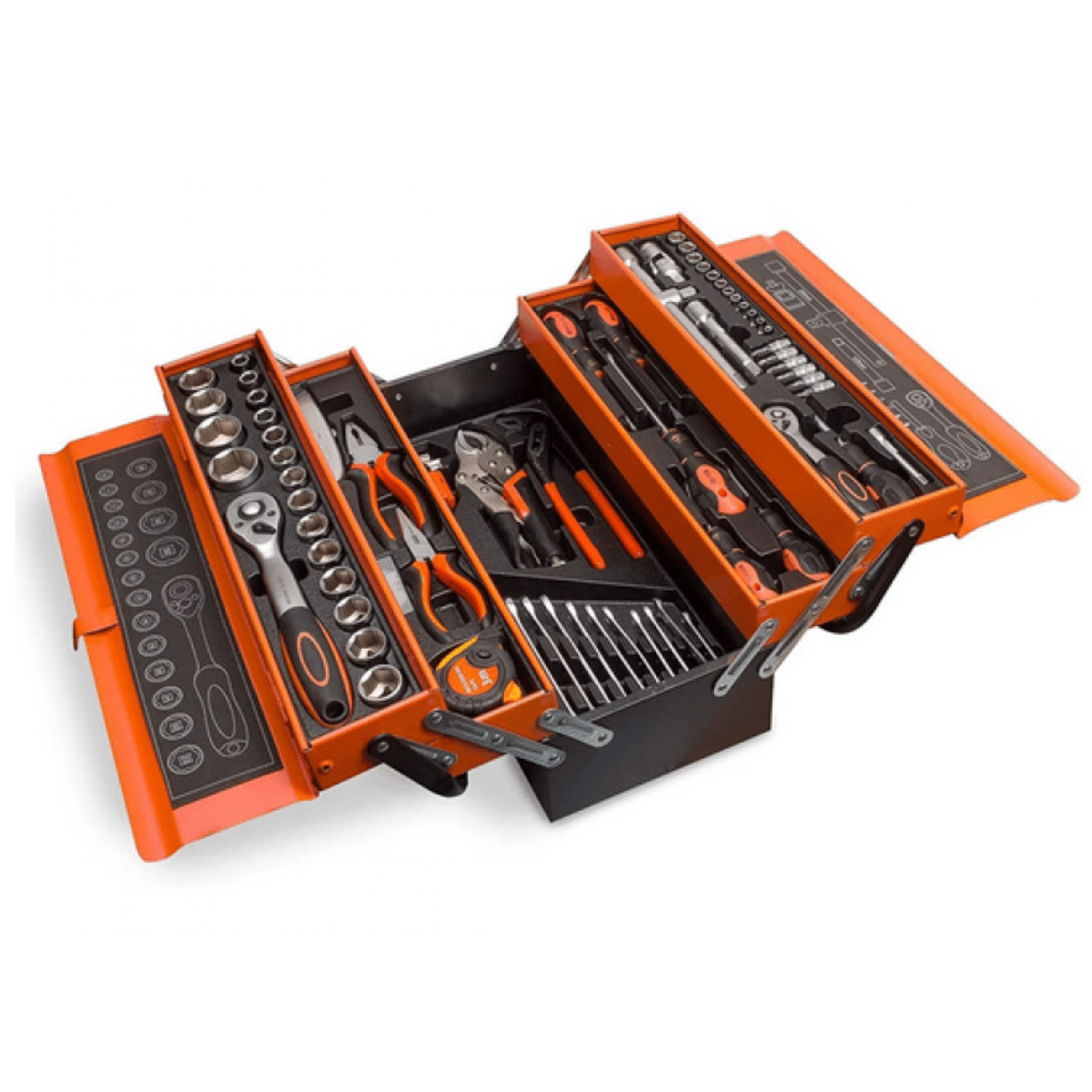 Trusa scule si unelte metalica compartimentata cu 4 sertare, 85 piese
